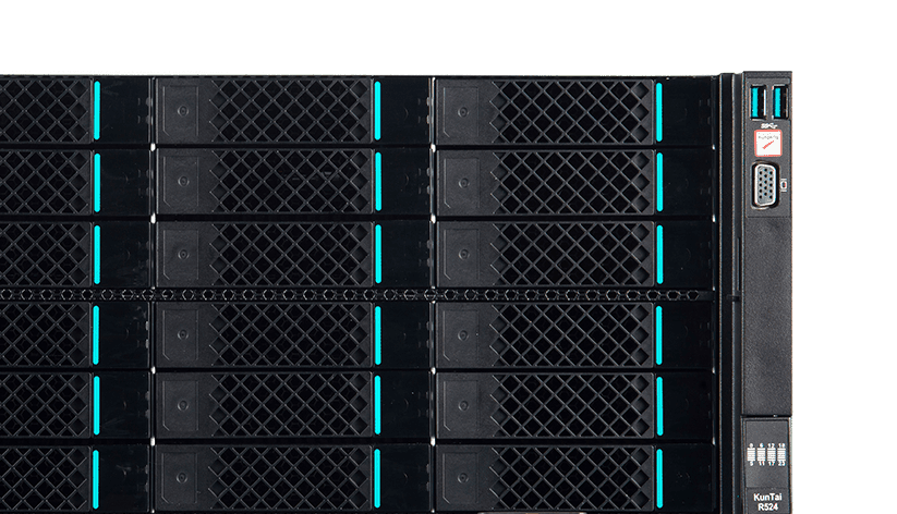 KunTai R524 存储型服务器是辉达平台数码基于鲲鹏处理器推出的新一代 ARM数据中心服务器。。主要面向存储业务,,,具有海量存储、、、、高性能、、低功耗以及易扩展的特点,,,适合为大数据分析、、软件定义存 储等应用场景的工作负载进行髙效加速。。。。
